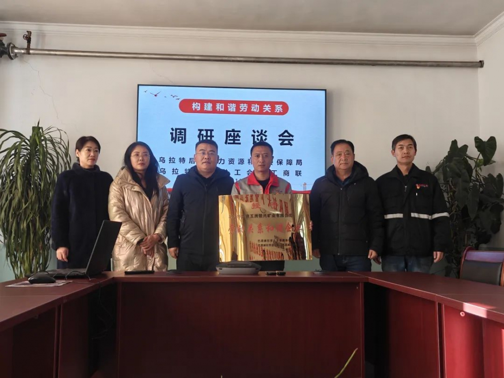 12月25日,烏拉特后旗人社局黨委書記、局長敖日格樂,總工會(huì)副主席潘瑩,工商聯(lián)副主席馬述敏等一行人到訪,在公司二樓會(huì)議室開展座談會(huì)并進(jìn)行“勞動(dòng)關(guān)系和諧企業(yè)”授牌儀式,公司黨支部副書記、經(jīng)理史小亮,職能部室人員參加座談會(huì)。